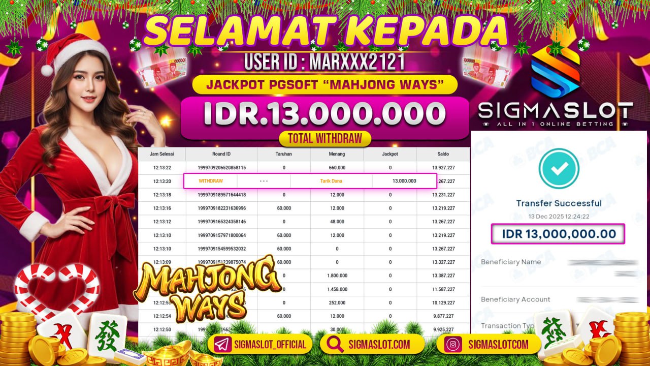 JACKPOT DI PGSOFT “Mahjong Ways” IDR 13.000.000 LUNAS SEKETIKA Mahjong Ways dari PG Soft kembali membuktikan reputasinya sebagai salah satu slot paling konsisten dalam menghadirkan kemenangan besar bagi pemain Indonesia. Pada momen ini, seorang pemain berhasil mencatatkan JACKPOT DI PGSOFT “Mahjong Ways” sebesar IDR 13.000.000 dan langsung LUNAS, hanya dari satu rangkaian momentum yang awalnya terlihat biasa namun berubah drastis dalam hitungan detik.
