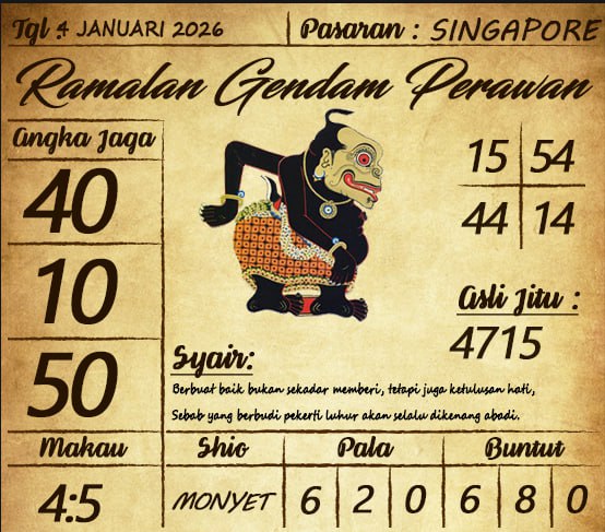SYAIR TOGEL SINGAPORE, 04 JANUARI 2026