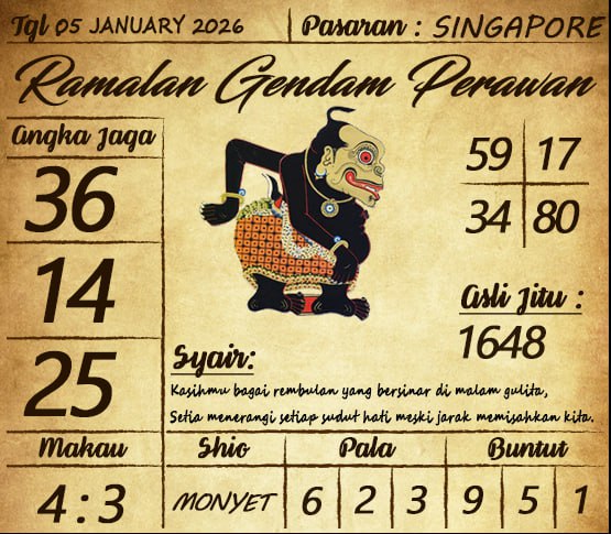 SYAIR TOGEL SINGAPORE, 05 JANUARI 2026