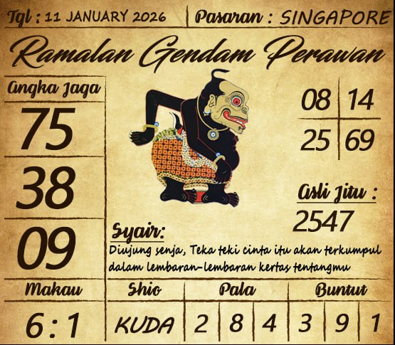 Syair Togel Singapore hari ini disusun berdasarkan pengamatan terhadap pola pergerakan angka yang senantiasa berubah dari hari ke hari. Banyak pemain memanfaatkan syair sebagai pedoman untuk membaca arah permainan, mencari tanda-tanda angka yang dianggap sedang “naik”, serta memahami kecenderungan rotasi yang sering muncul dalam periode tertentu. Dengan mengikuti perkembangan pasaran secara konsisten, gambaran umum mengenai pola Singapore akan terlihat semakin jelas.