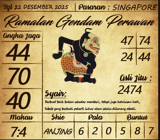 Syair Togel Singapore hari ini disusun berdasarkan pengamatan terhadap pola pergerakan angka yang senantiasa berubah dari hari ke hari. Banyak pemain memanfaatkan syair sebagai pedoman untuk membaca arah permainan, mencari tanda-tanda angka yang dianggap sedang “naik”, serta memahami kecenderungan rotasi yang sering muncul dalam periode tertentu. Dengan mengikuti perkembangan pasaran secara konsisten, gambaran umum mengenai pola Singapore akan terlihat semakin jelas.