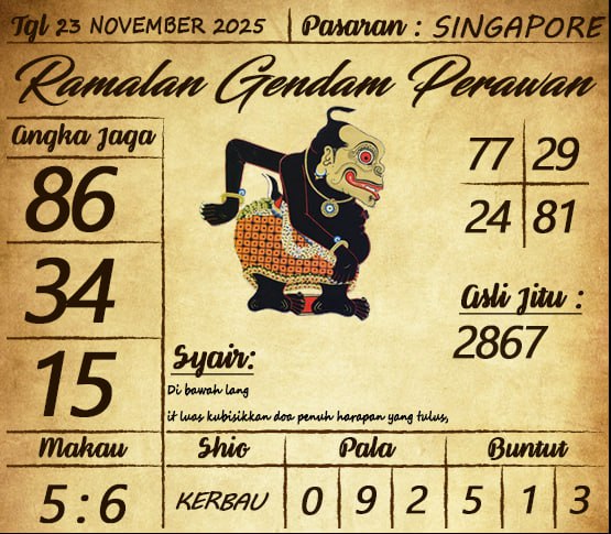 Syair Togel Singapore hari ini disusun berdasarkan pengamatan terhadap pola pergerakan angka yang senantiasa berubah dari hari ke hari. Banyak pemain memanfaatkan syair sebagai pedoman untuk membaca arah permainan, mencari tanda-tanda angka yang dianggap sedang “naik”, serta memahami kecenderungan rotasi yang sering muncul dalam periode tertentu. Dengan mengikuti perkembangan pasaran secara konsisten, gambaran umum mengenai pola Singapore akan terlihat semakin jelas.