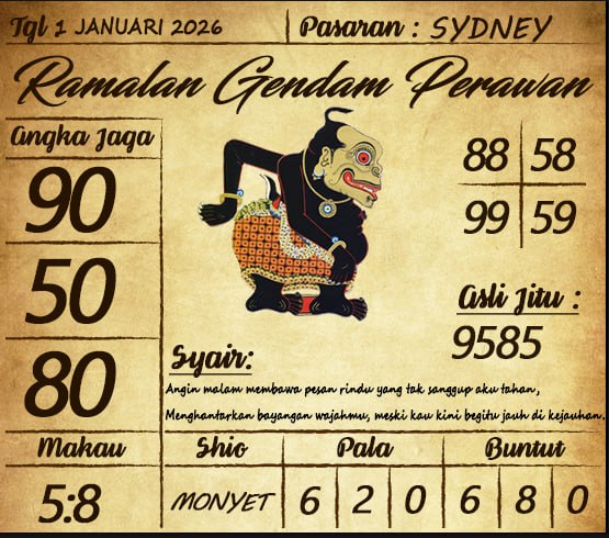 SYAIR TOGEL SYDNEY, 01 JANUARI 2026