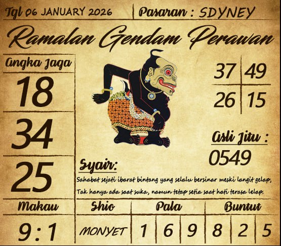 SYAIR TOGEL SYDNEY, 06 JANUARI 2026