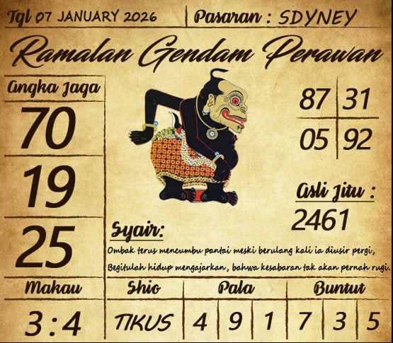 SYAIR TOGEL SYDNEY, 07 JANUARI 2026