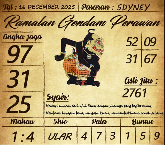 SYAIR TOGEL SYDNEY, 16 DESEMBER 2025