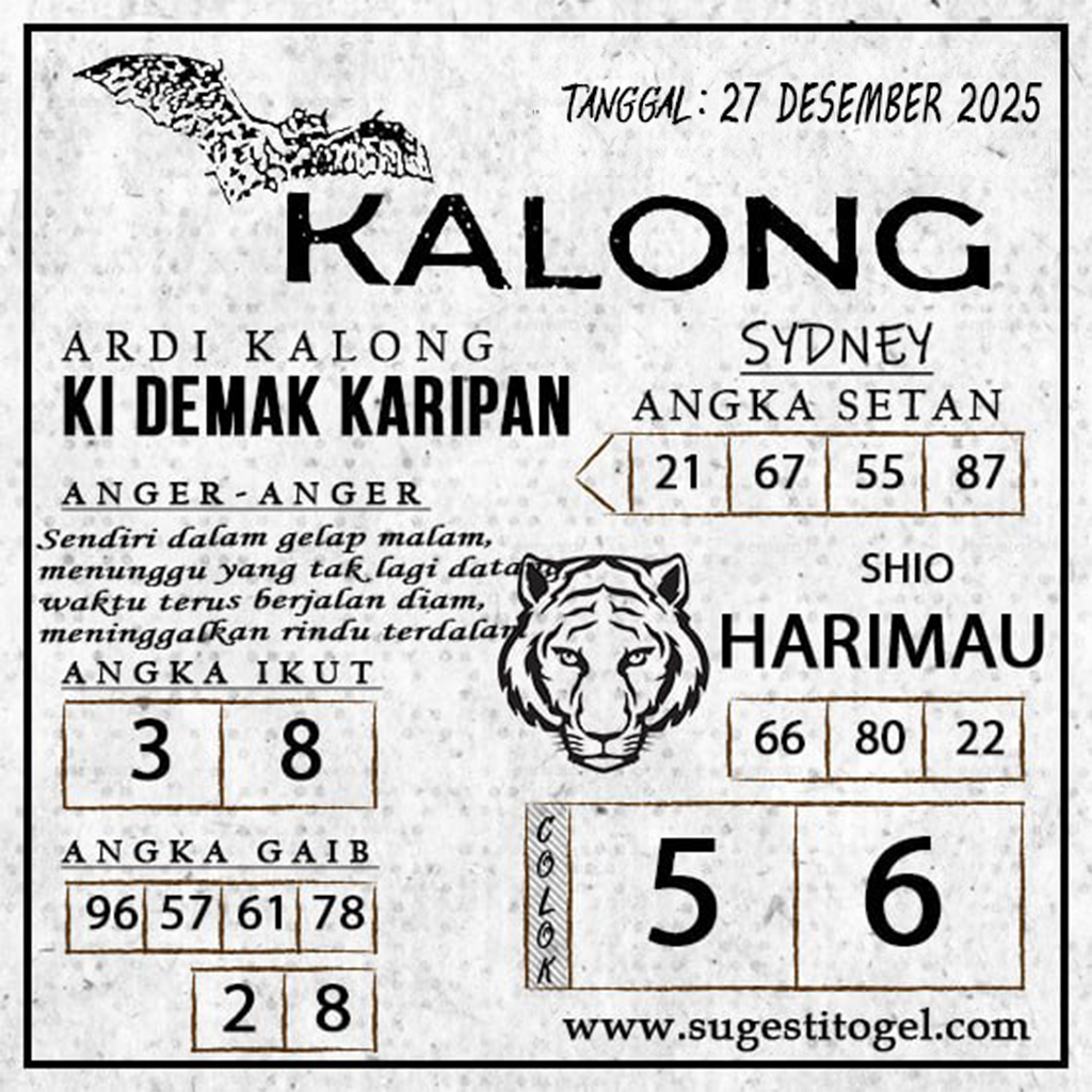 Syair Togel Sydney hari ini disusun berdasarkan pengamatan terhadap pola pergerakan angka yang terus berubah dari hari ke hari. Banyak pemain menggunakan syair sebagai pegangan untuk membaca arah permainan, mencari pertanda angka yang dianggap “naik”, serta memahami kecenderungan rotasi yang sering muncul dalam periode tertentu. Dengan mengikuti pergerakan pasaran secara rutin, gambaran umum mengenai pola Sydney akan terlihat semakin jelas.